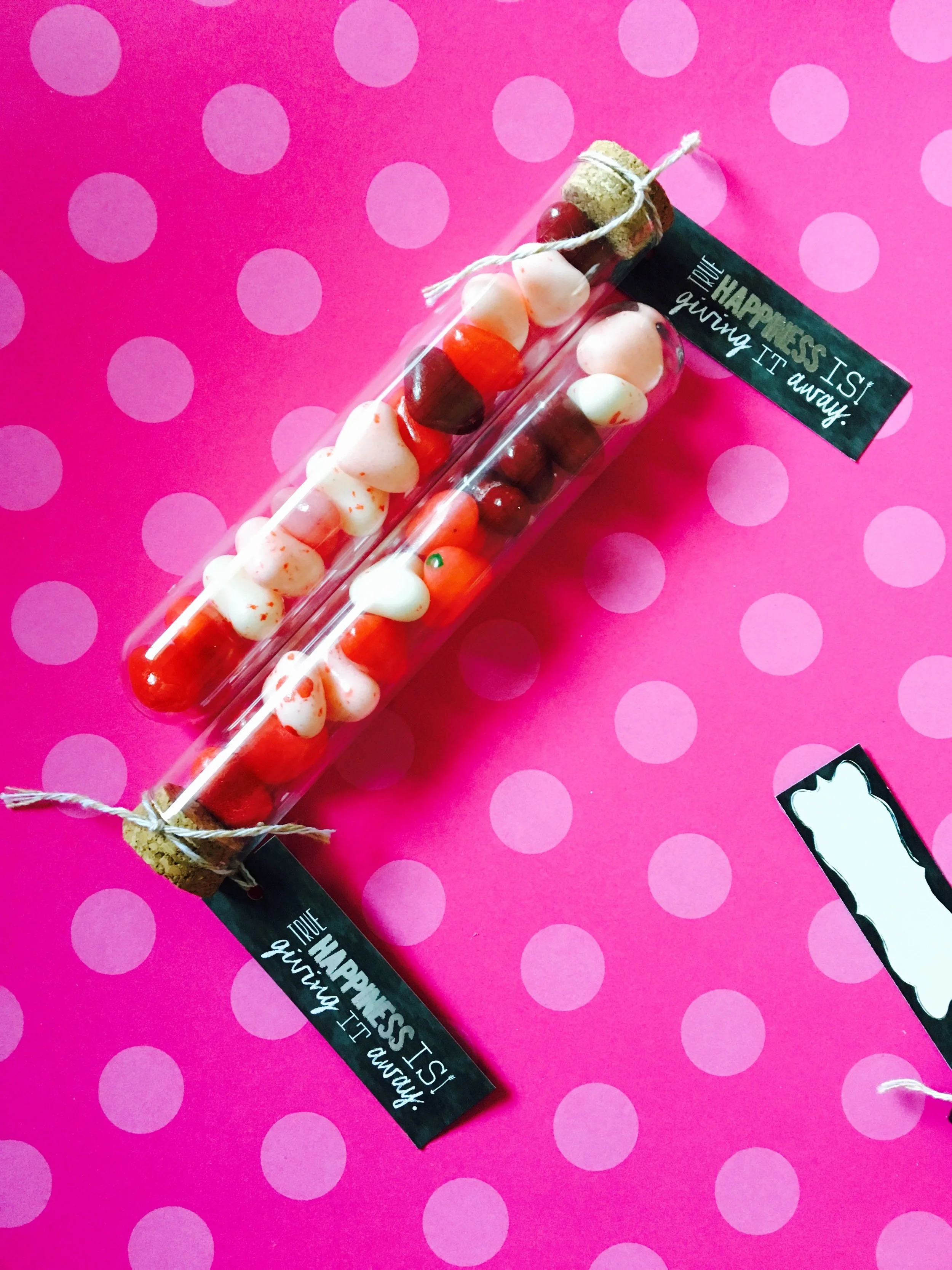 Here's a visual slideshow with each step in how to make your candy capsule. I picked heart shaped jelly candies for adding color and significance to the occasion but any miniature candy will work. Just make sure to consider the diameter of the tube's opening when making candy selections.